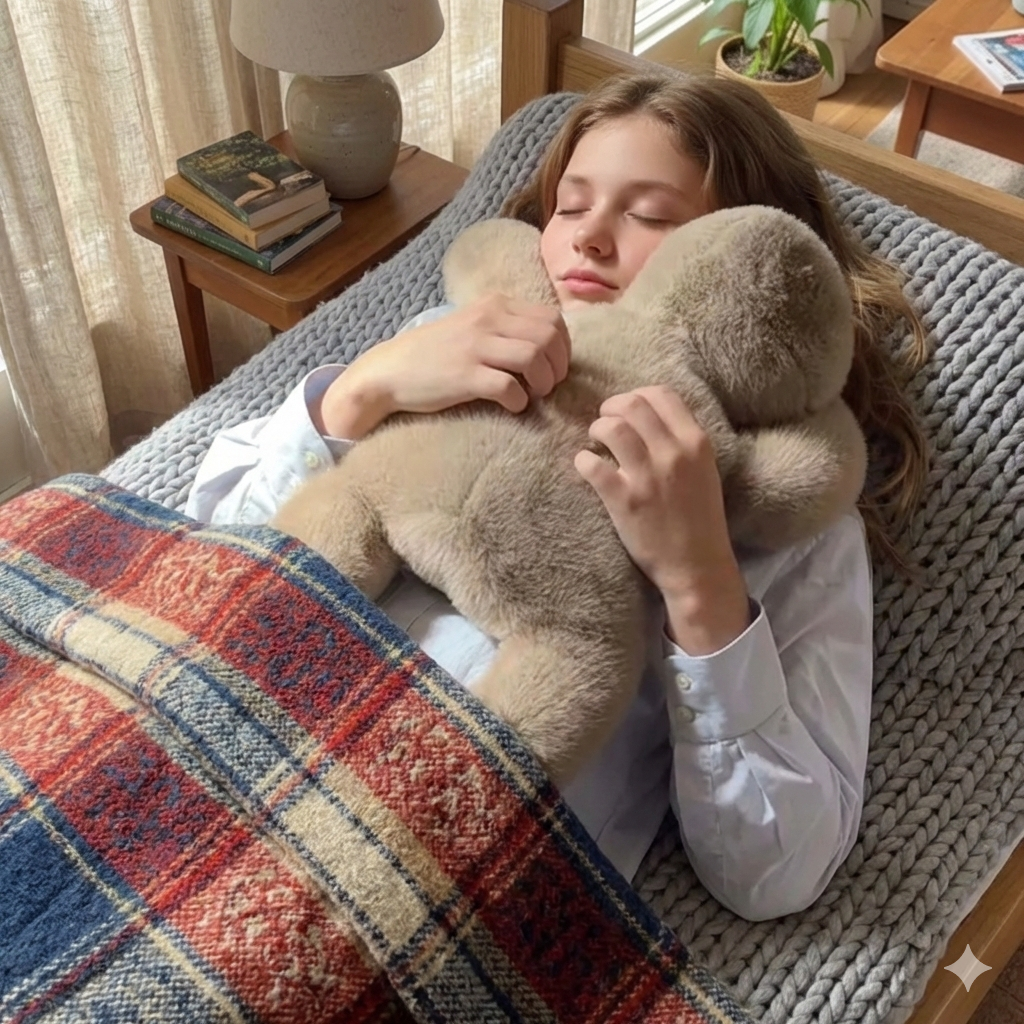 Oui. La pression douce qu’exerce la peluche aide à libérer des hormones de bien-être (sérotonine, mélatonine) et à réduire le cortisol, favorisant un sommeil plus profond et plus rapide.